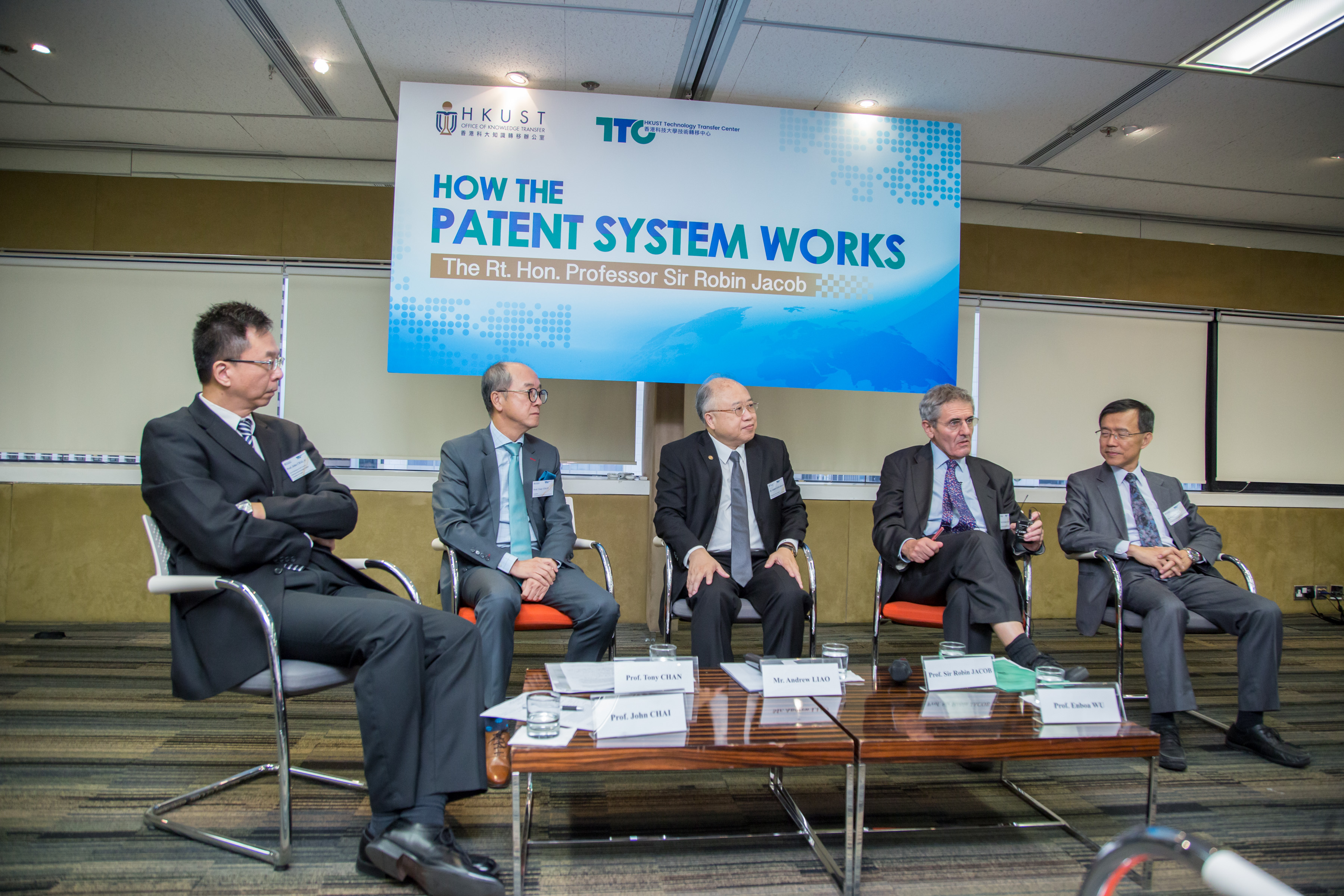 The seminar was followed by a panel discussion with Sir Robin Jacob, Mr Liao, Professor Tony Chan, HKUST President, Professor John Chai, JP, Vice-Chairman of HKUST Council & Chairman of Knowledge Transfer Committee of HKUST Council and Professor Enboa Wu, Associate Vice-President for Knowledge Transfer of HKUST, bringing a diverse perspective of patent system to the audience.