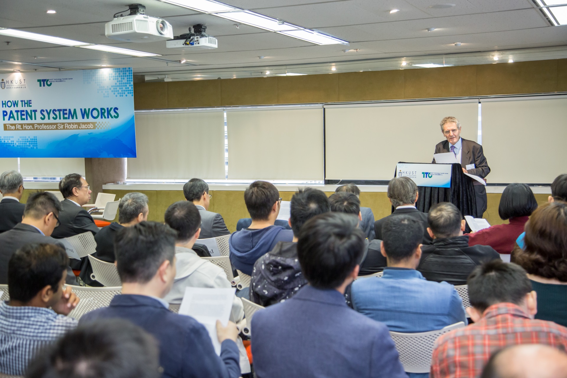 Office of Knowledge Transfer (OKT) and The Technology Transfer Center (TTC) co-hosted an Intellectual Property (IP) Seminar “How the Patent System Works” on 20 November 2017 at HKUST Business School Central. The seminar featured the Rt. Hon. Professor Sir Robin Jacob, Hugh Laddie Professor of Intellectual Property, University College London, Former Lord Justice of Appeal of England and Wales, to decode the complex patent system and share insights on how to best use the patent system to support innovation.