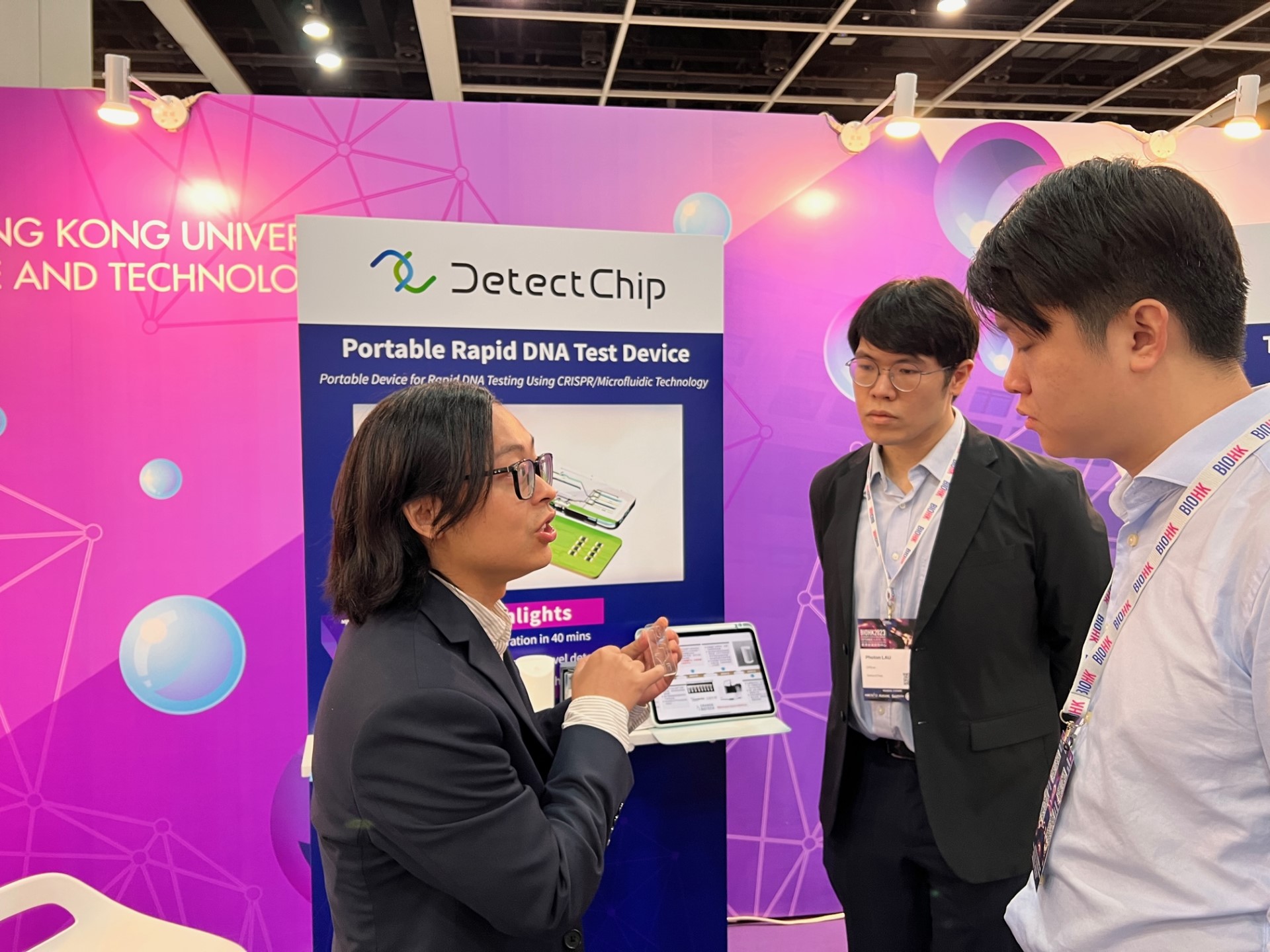 The BIOHK 2023 exhibition serves as an excellent opportunity for us to demonstrate HKUST's commitment to pushing the boundaries of scientific knowledge and advancing the frontiers of biotechnology. Our cutting-edge solutions cover different aspects such as cancer treatment with sonic hedgehog secretion control, a new option for replacing HPLC, a portable rapid DNA test device, a new solution that can triple the mRNA vaccine efficacy via tailored tail sequence, and more!